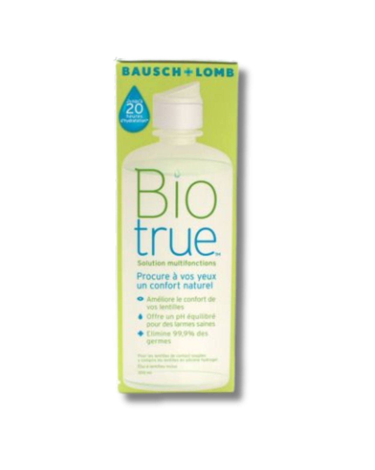 Biotrue multi-purpose solution is effective for cleaning, conditioning, disinfecting, rinsing, and storing soft contact lenses. Dual-disinfection system. Uses a lubricant found naturally in your eyes. Matches the pH of healthy tears. It utilizes a lubricant found naturally in the eyes, ensuring up to 20 hours of moisture, which is beneficial for long-wearing comfort. Formulated to kill 99.9% of germs, providing safe and hygienic wear every day.